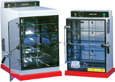 • Rapid air circulation over the desiccant trayshelves giving swift stabilisation of humidity