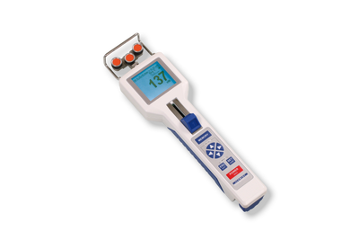 The DTX series has a memory for 60,000 readings and a USB interface. Four different memory modes can be set, with nine material memory locations for custom calibrations. The meter also includes a WiFi module for wireless communication with a PC. Special purpose versions are available with rollers for tapes and ribbons, or large rollers for fragile filaments and technical fibres.