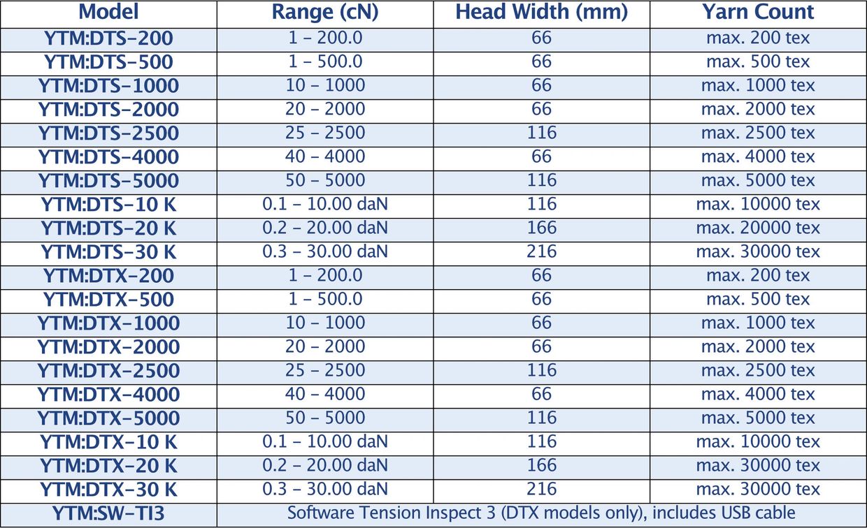 Two models available, the DTS is the basic unit for many applications, the DTX provides detailed process data and analysis with interface for PC connection. The DT Series Yarn Tension Meter has many features including thickness compensator to reach highest accuracy, the diameter of the material to be measured can be set with a wheel and be displayed in the screen. The filament guide and roller shifting mechanism ensures easy acquisition of the running material. The Yarn Tension Meter allows user to take high speed data samples, with a flexible menu set-up to meet operators demands.